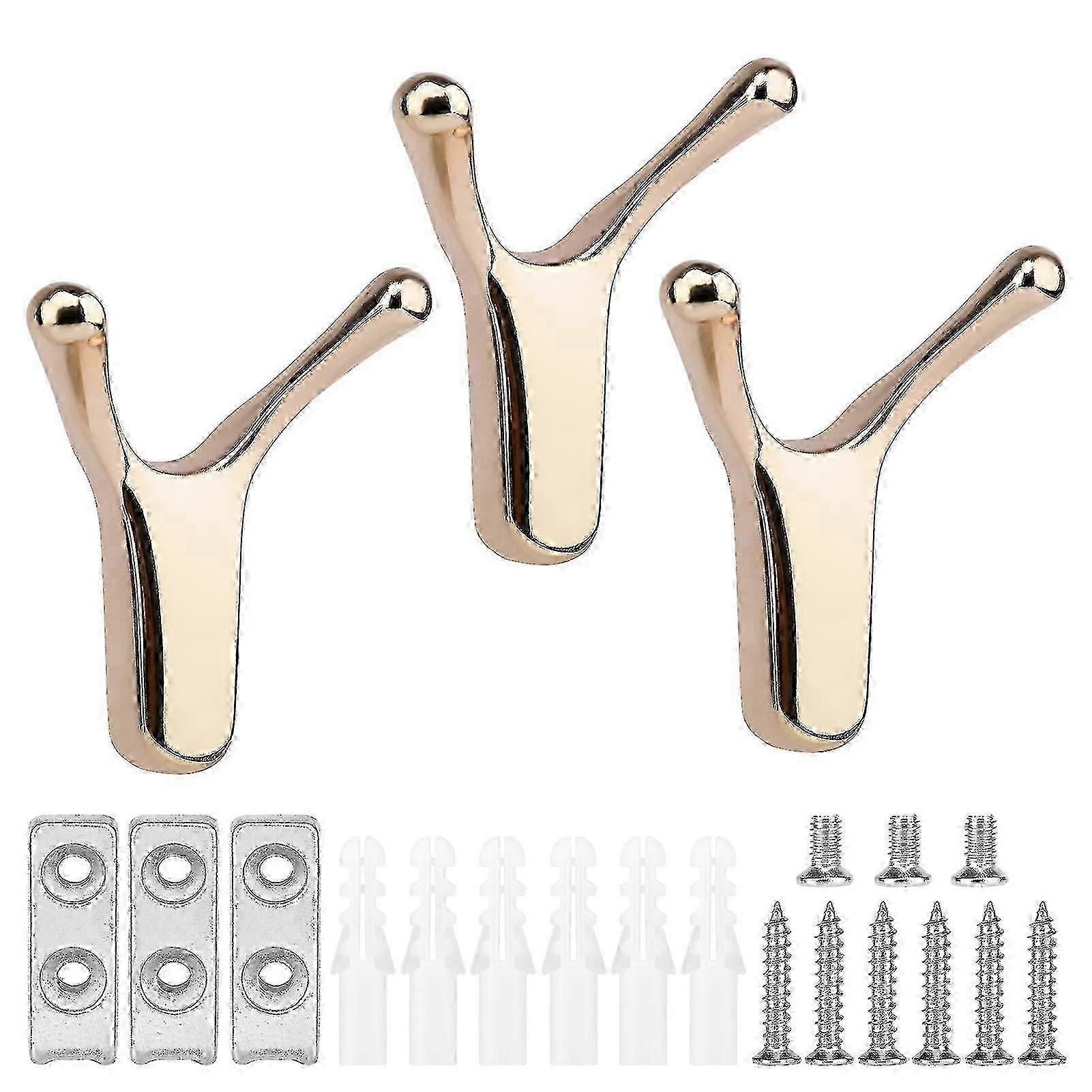 Features:1. DOUBLE HOOK DESIGN: These coat hooks are designed with double hooks, which can hang more items and save space. The package includes a total of 3 coat hooks, 6 expansion screws, 6 screws, and 3 fixings.2. DURABLE MATERIAL: Made of zinc alloy material with high hardness, durable and strong bearing capacity. The spray treatment design on the surface makes the hook not easy to fade, and the golden design is beautiful and practical.3. UNIVERSAL SIZE: The size of the coat hook is about 70x56 mm/2.76x2.20inch (LxW), and the width of the handle is about 16 mm/0.63 inch. The length is moderate, and it can hang most items, with a wide range of applications and convenient life.4. EASY TO INSTALL: first remove the fixing piece, then install the fixing piece on the wall with tools, then install the clothes hook on the fixing piece, and finally tighten the fixing screw. (Installed on the wall and installed on the wooden board, the installation method is different).5. APPLICABLE SCENE: It is suitable for various occasions such as bedroom, living room, bathroom, closet, house entrance and office, etc. It can be used to hang coats, coats, down jackets, hats, backpacks, necklaces, keys, etc. Add a decorative room to your home.1. With double hook design, you can hang more items and save space.2. Can be used to hang coats, coats, down jackets, hats, backpacks, necklaces, keys, etc.3.Made of zinc alloy material with high hardness, durable and strong bearing capacity.Specification:Product name: Clothes hookColor: GoldMaterial: Zinc alloySize: About 70*56 mm/2.76*2.20 inch (L*W), Shank: 16 mm/0.63 inch (W)The package includes:3Pcs x Clothes hook6Pcs x Expansion screw6Pcs x Screws3Pcs x FixturesNote:1. Due to the light and screen difference, the items color may be slightly different from the pictures.2. Please allow 0.5-2 cm differences due to manual measurement.3. It is recommended to use an electric drill to open holes and install expansion screws on the wall.4. Installed on the wooden board, you can use a screwdriver to directly screw the screw, and the self-tapping screw does not need to open holes.