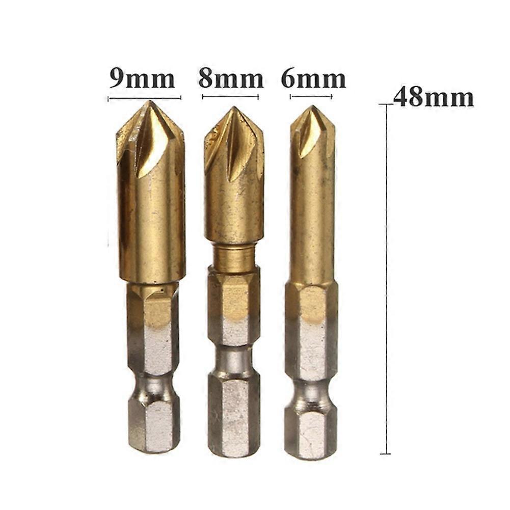3Pcs HSS Chamfering Countersinks for Drilling and Chamfering Bit 1/4" Hex Shank 90 Degree Wood Chamfer Cutter 6mm-19mm Power Tools