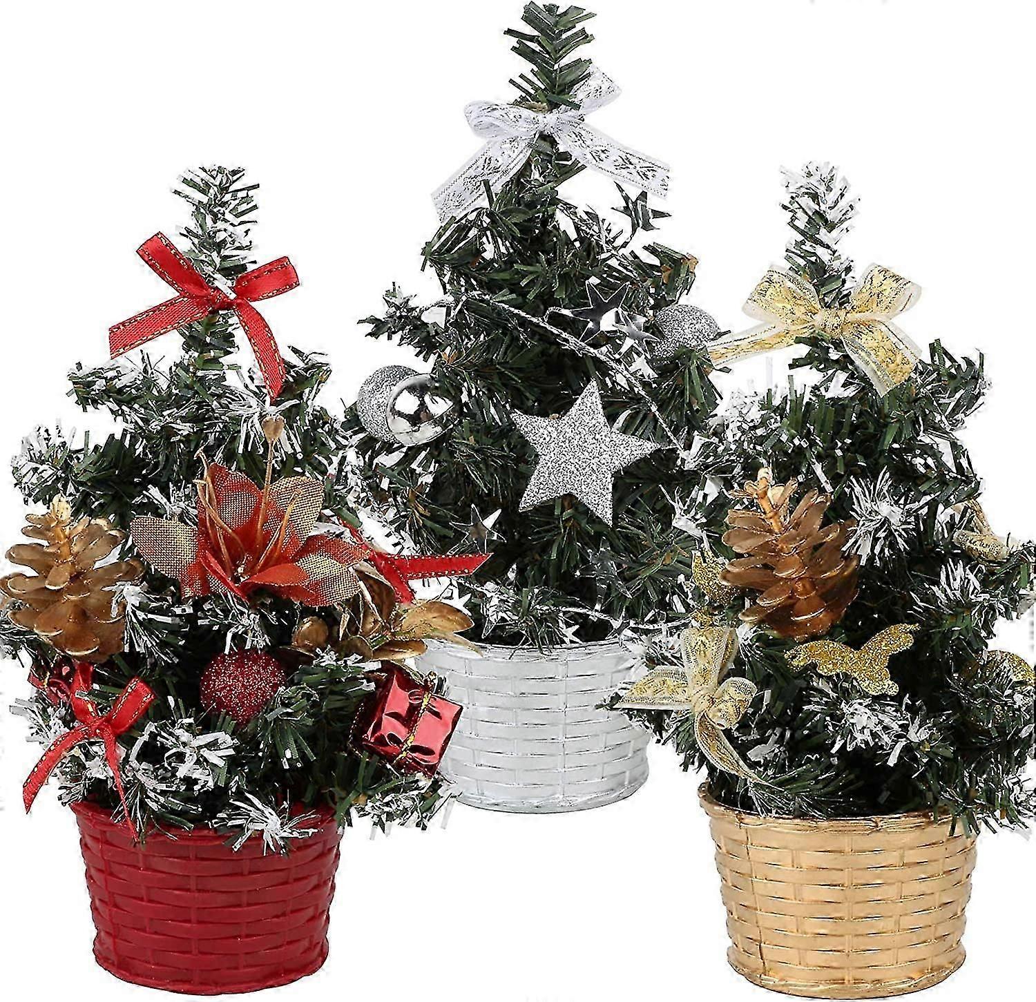 3PCS Mini Christmas Tree Miniature Christmas Ornament 20cm Figurines Christmas Tree Mini Landscape Christmas Table Decoration