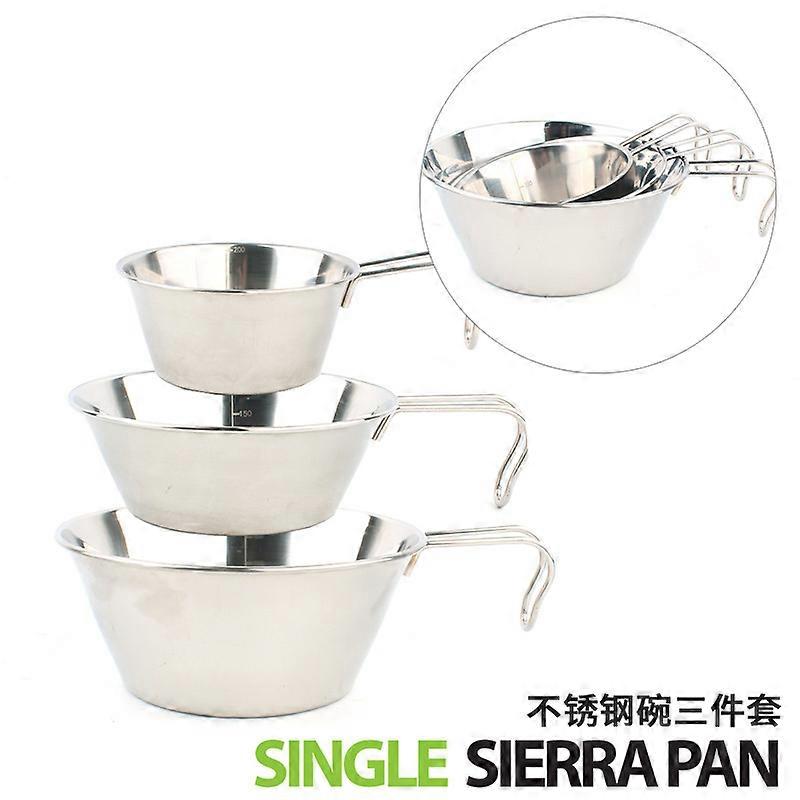 3Pcs Outdoor Stainless Steel Bowl Picnic Portable BBQ Foldable Cup Mountaineering Water Camping Stove Cup Utensils