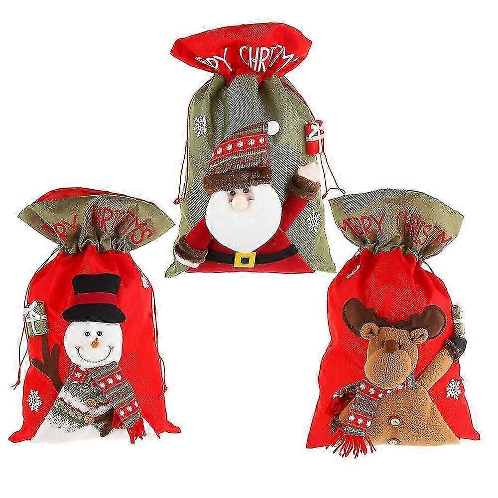 3pcs Christmas Sacks Drawstring Christmas Bags, 3d Design Fabric Christmas Bags For Christmas