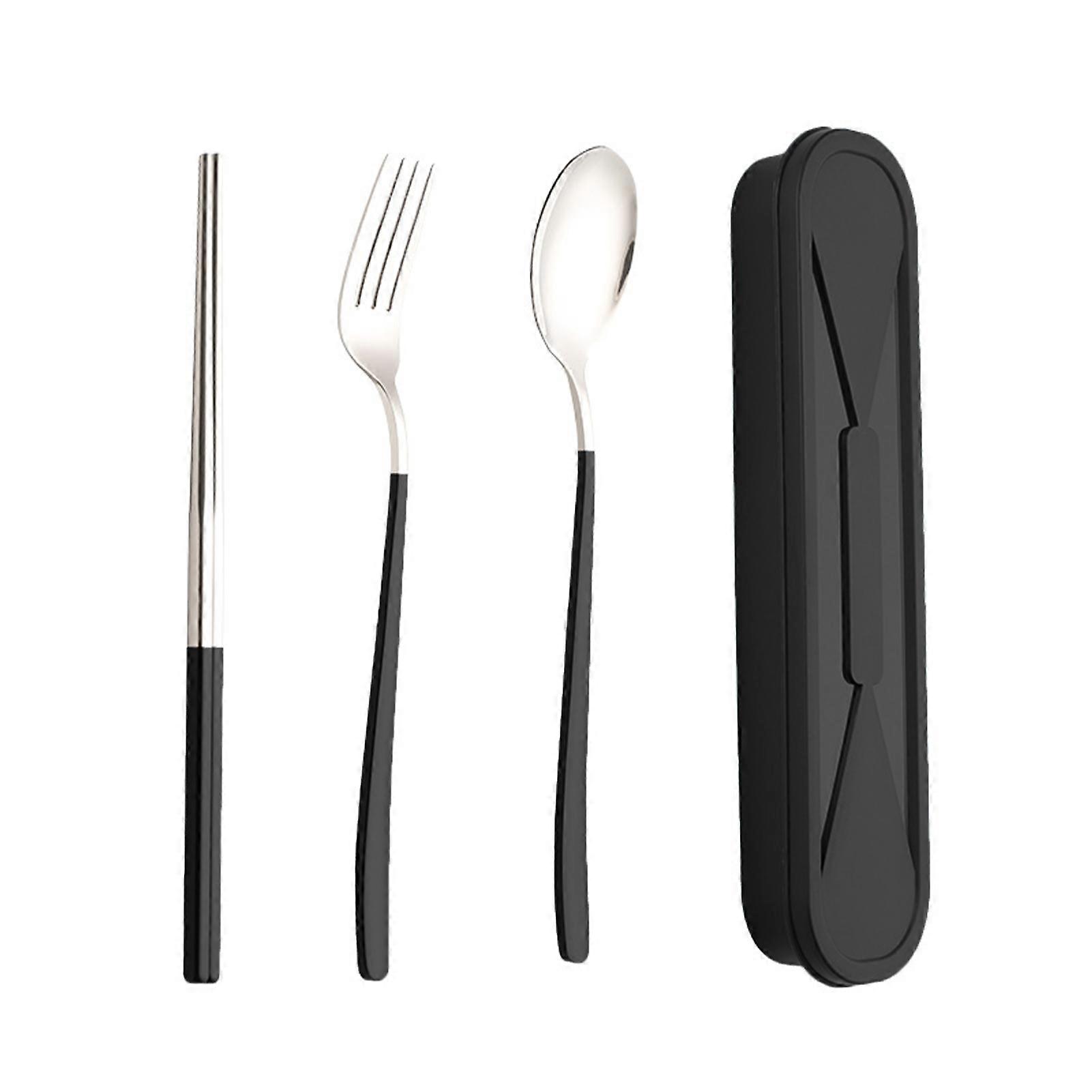 3Pcs Student Portable Cutlery Set Outdoor Picnic Home Tableware with Chopsticks Stainless Steel Chopsticks Office Storage Case Fork Spoon