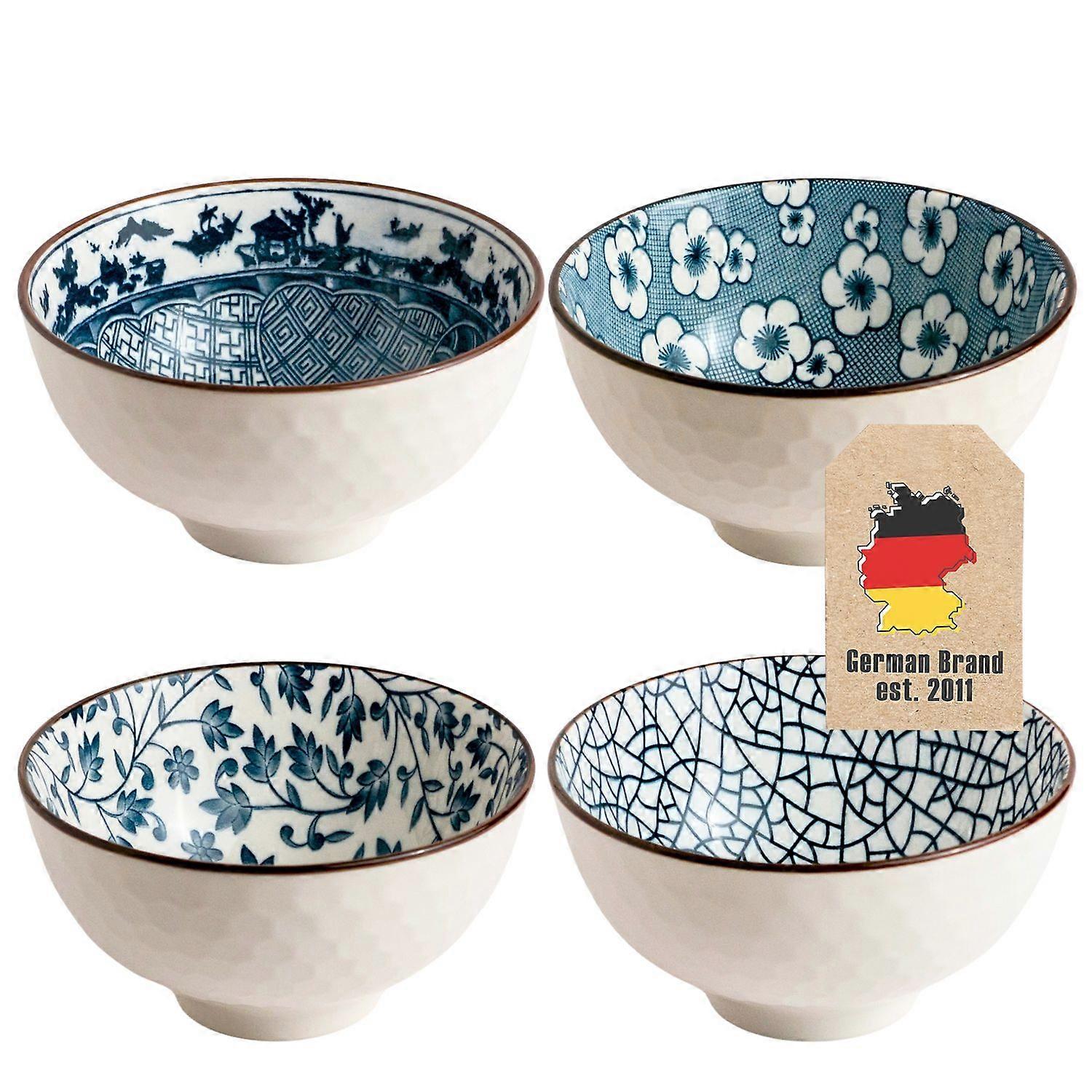 4-teiliges Schalen-Set in schickem Geschenkkarton - Japanisches Porzellan Geschirrset in Blau und Weiß