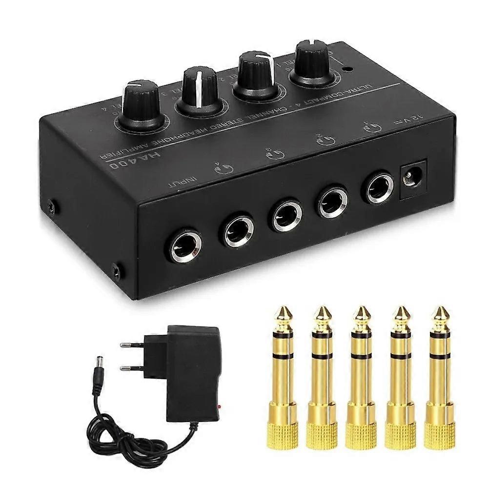 4-channel Mini Stereo Headphone Amplifier With Eu Plug Adapter And 6.5mm To