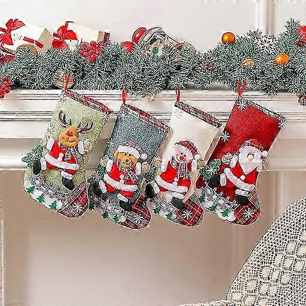 4 Christmas Stockings 2023 Christmas Decoration Christmas Sock 3D Pattern Christmas Gift Bag for Children