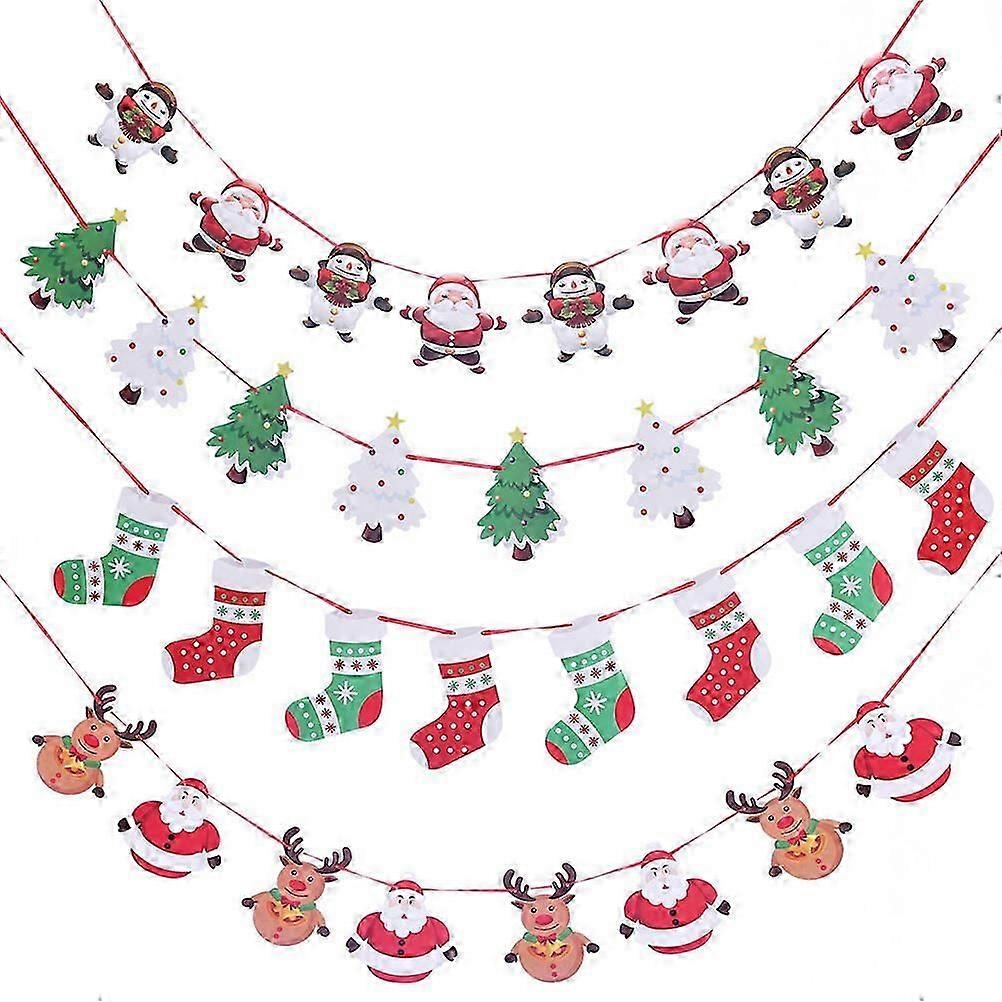 4 Pcs Christmas Decor Christmas Banners Cartoon Paper Christmas Paper Banner Christmas Hanging Garland