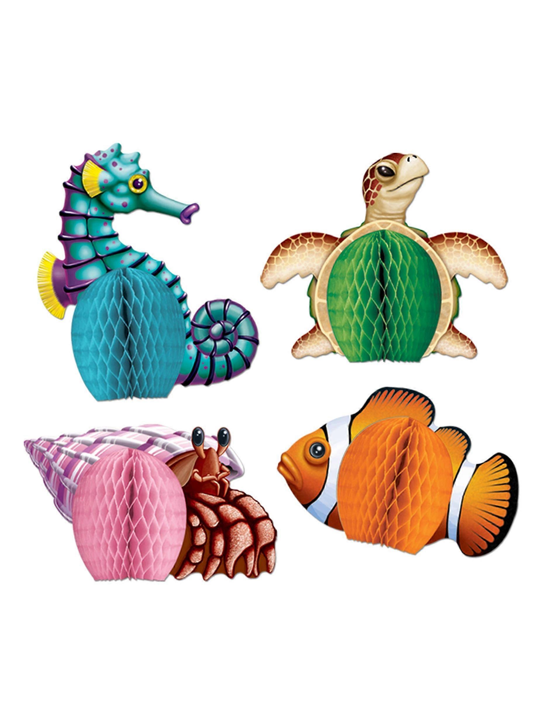 4 Mini centres de table en papier Créatures de la Mer 14 cm