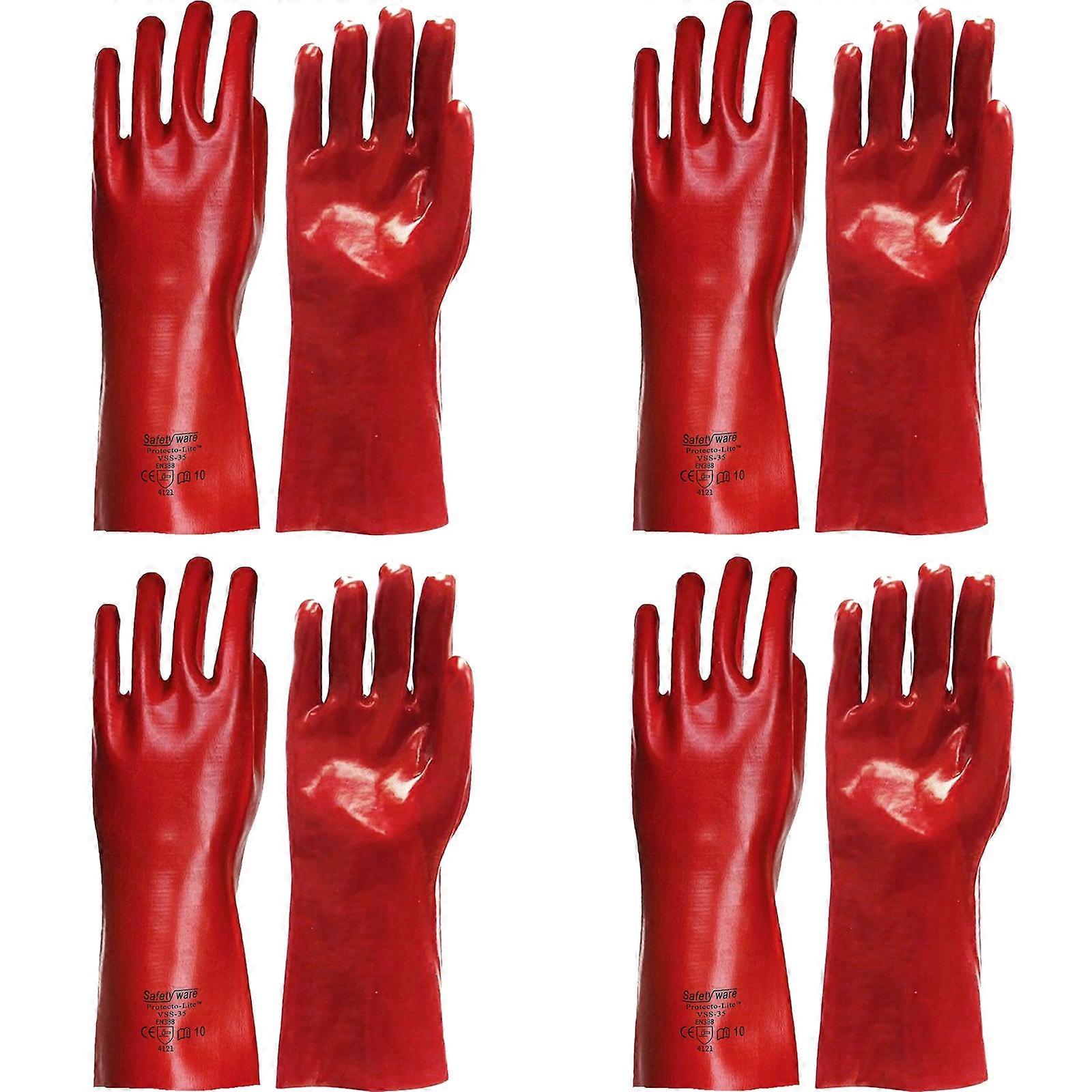 4 Pair Safetyware Protecto-lite Pvc Gauntlet Safety Work Gloves Bulk Resistant Red Long Single Dip Protection For Kitchen Cleaning Oil Dishwashing.