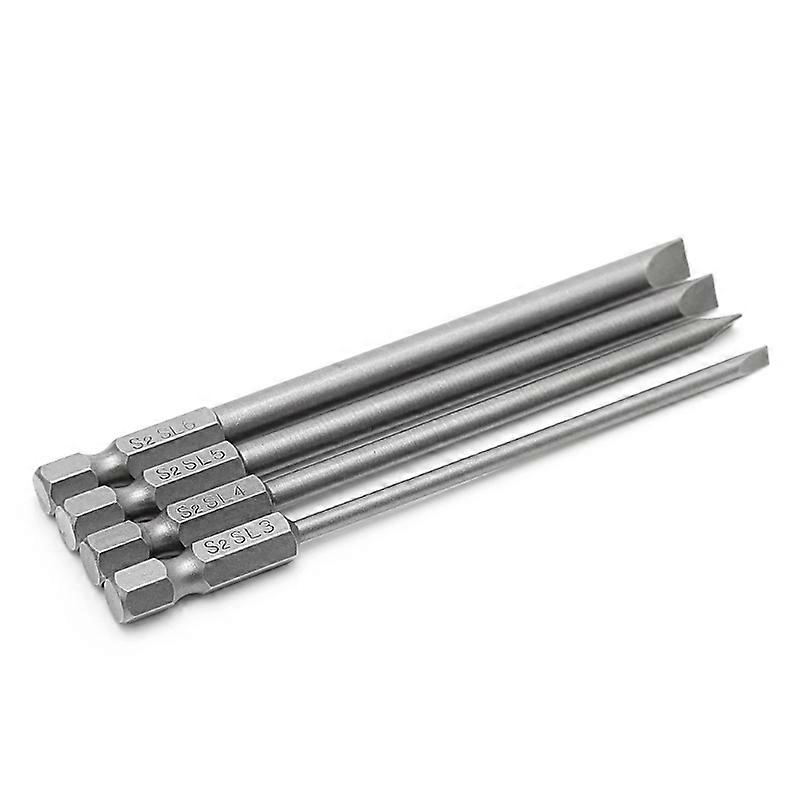 4 pcs. 100mm Flat Head Screwdriver Bit 3mm-6mm S2 Magnetic Flat Head 1/4" Hex Handle
