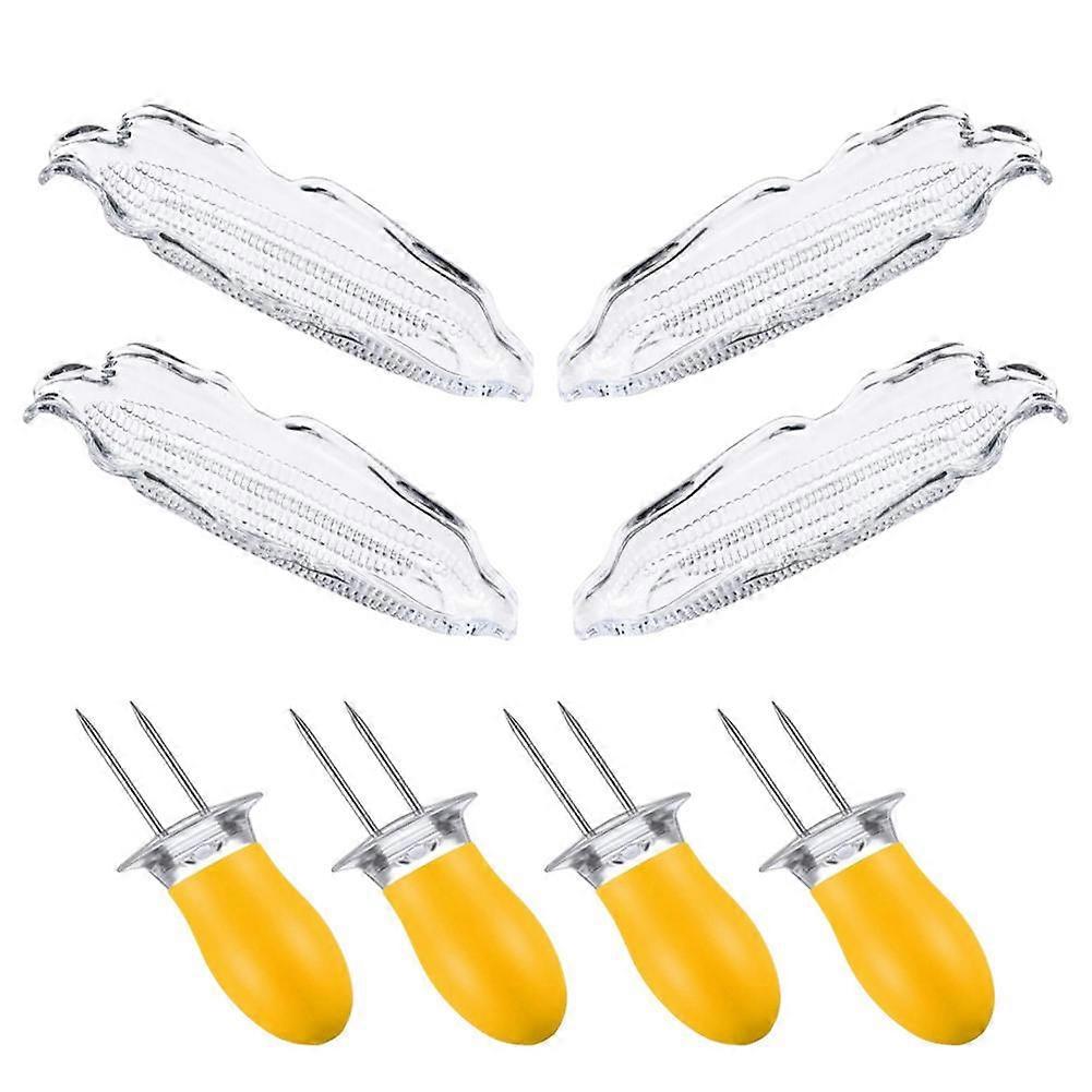 4 pcs. Corn tray and 4 pcs. Corn cob candle holder set barbecue accessories transparent plastic corn dish handles grilling fork