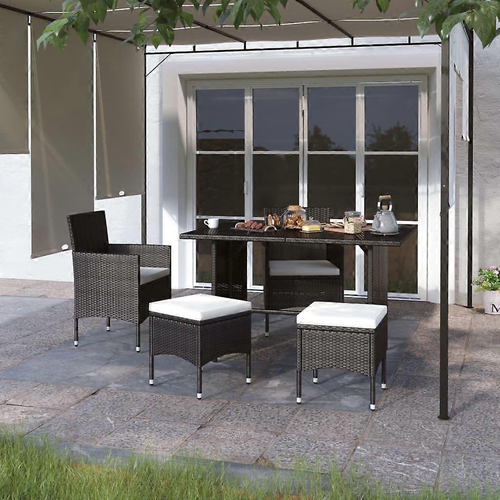 4-tlg. Gartenstuhl und Hocker Set Poly Rattan Schwarz