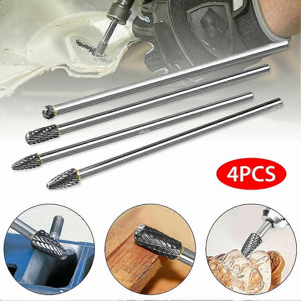 4 pcs. Rotary Velcro Double Cut Tungsten Carbide Bit 1/4In Shank 6 Included Carbide Rotary Tool for Metal Wood Polishing.