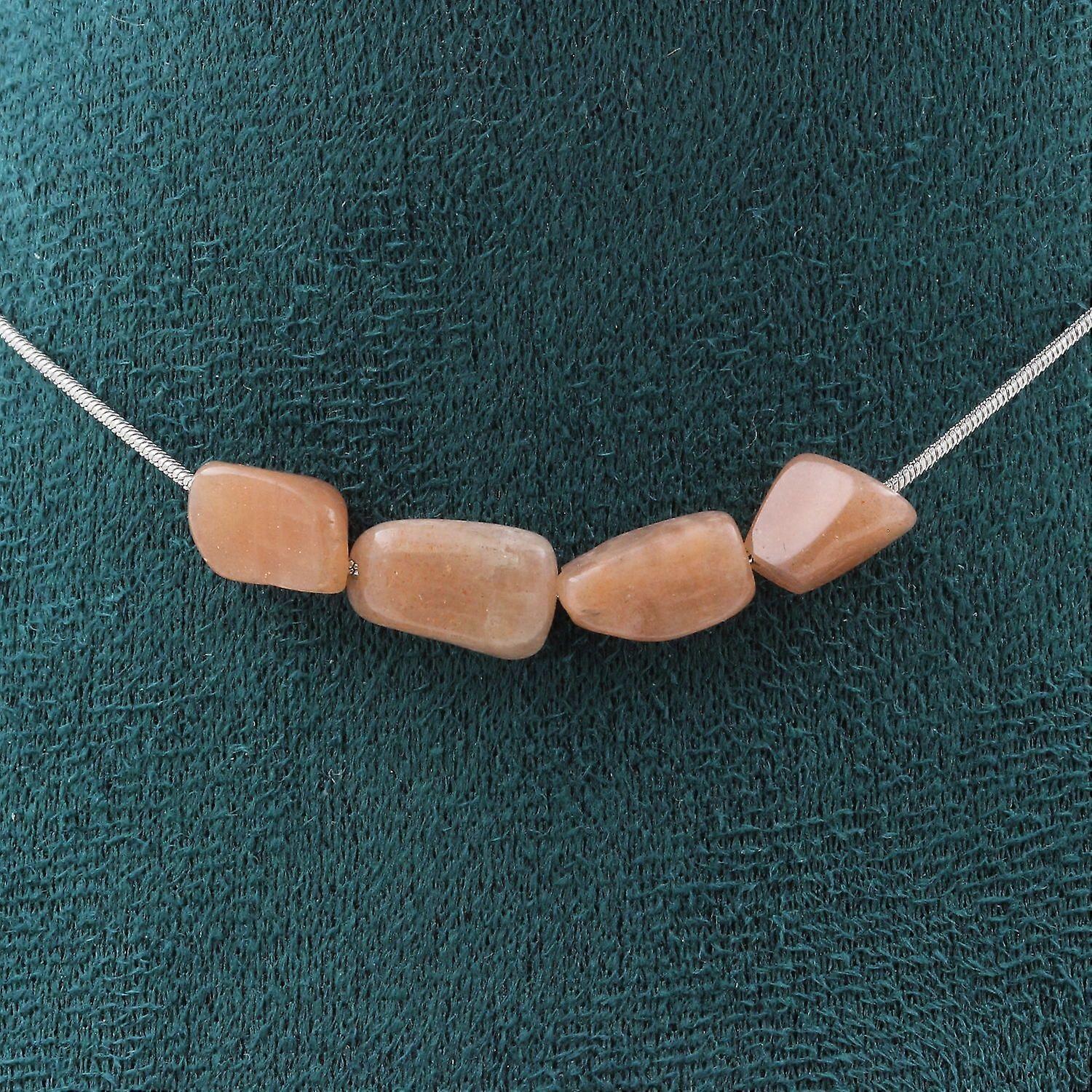 4-pearl necklace Sunstone from Tanzania Stainless steel chain