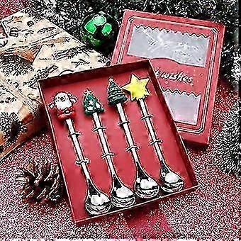 4 Pieces StainlSteel Christmas Spoon,Christmas Coffee Spoon Tea Spoon Christmas Style Mixing Spoon for Christmas Tableware (Silver)