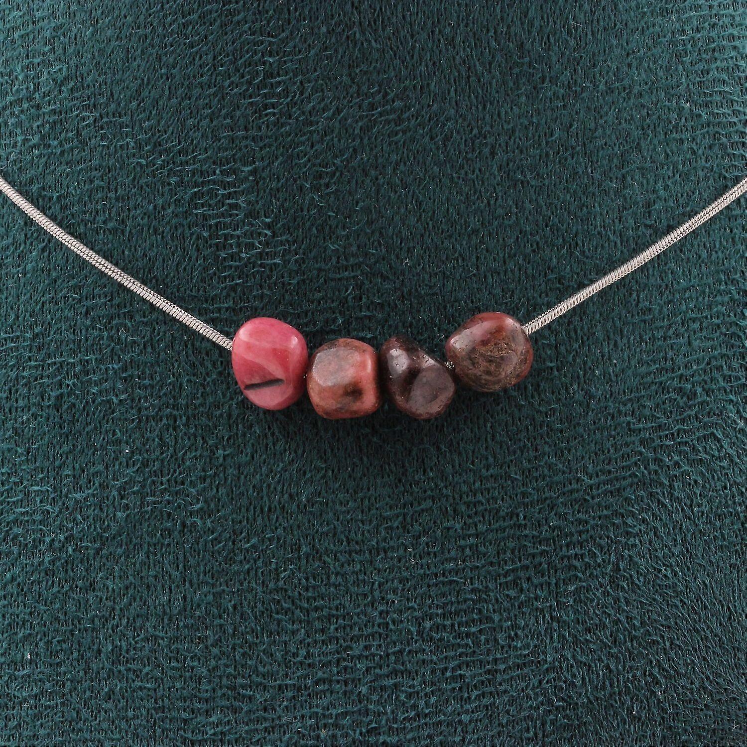 4 Rhodochrosite pearl necklace from Brazil Stainless steel chain