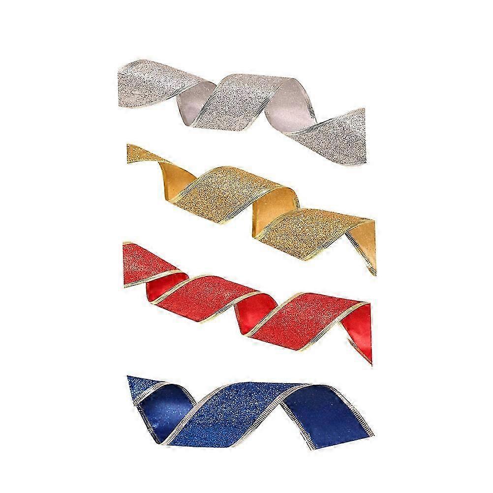 4 Roll Gift Ribbons Christmas Glitter Ribbon Diy Wire Ribbon Webbing Ribbon Xmas Ribbon Wired