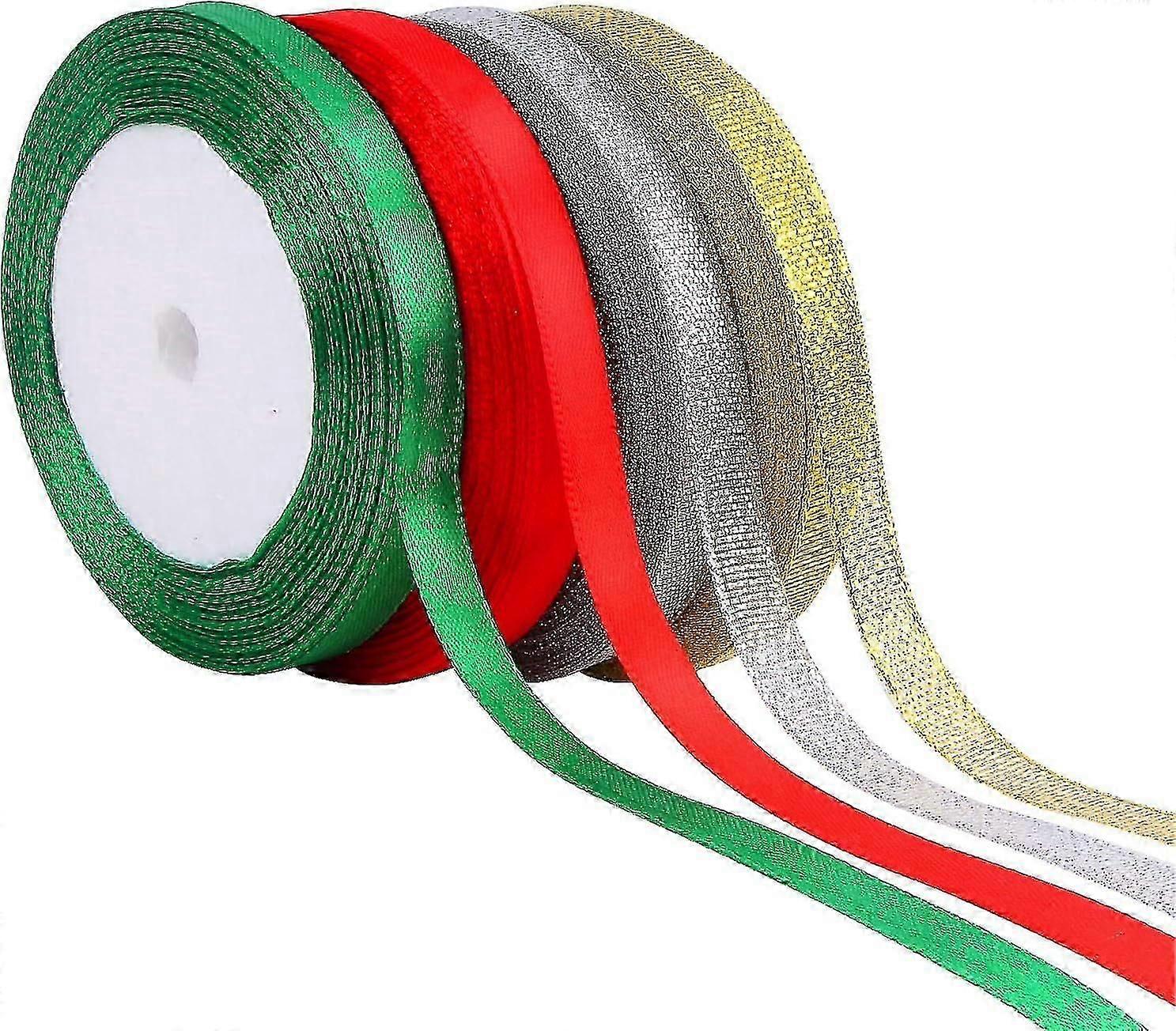 4 Rolls 100 Yards Christmas Ribbons Metallic Glitter Fabric Holiday Festival Satin Ribbons 10mm Wide For Gift Wrapping Decoration