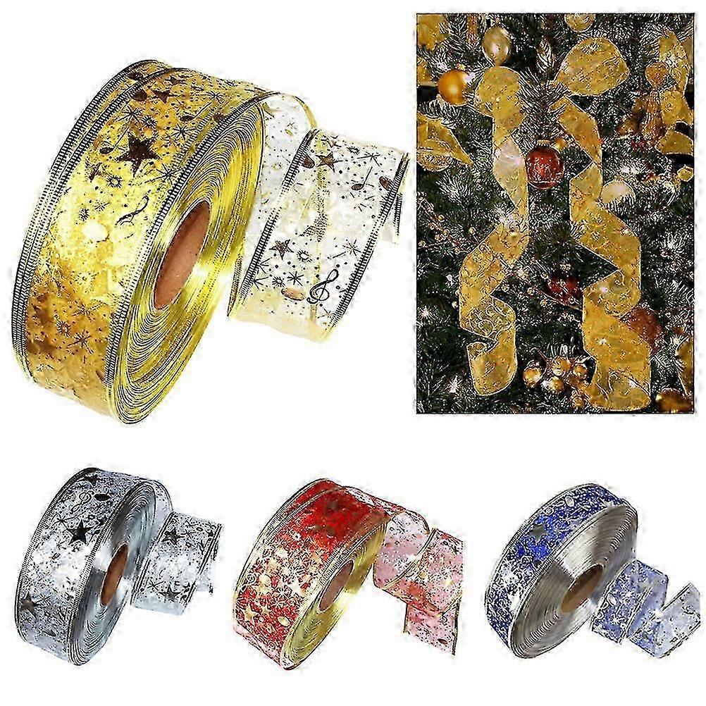 4 Rolls 2m Organza Ribbon Bling Star Printed Ribbons For Wedding Gift Package Christmas Decoration