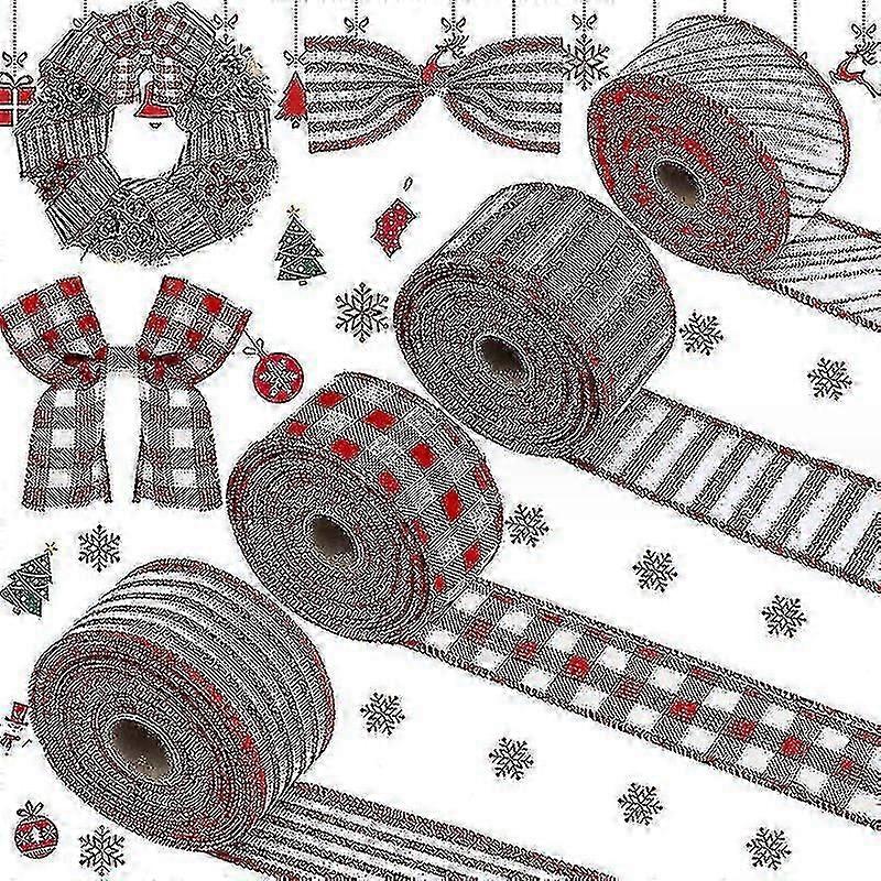 4 Rolls Christmas Plaid Ribbon - Snowflake Plaid Burlap Ribbon for Christmas Tree Home Wrapping Craft Decoration