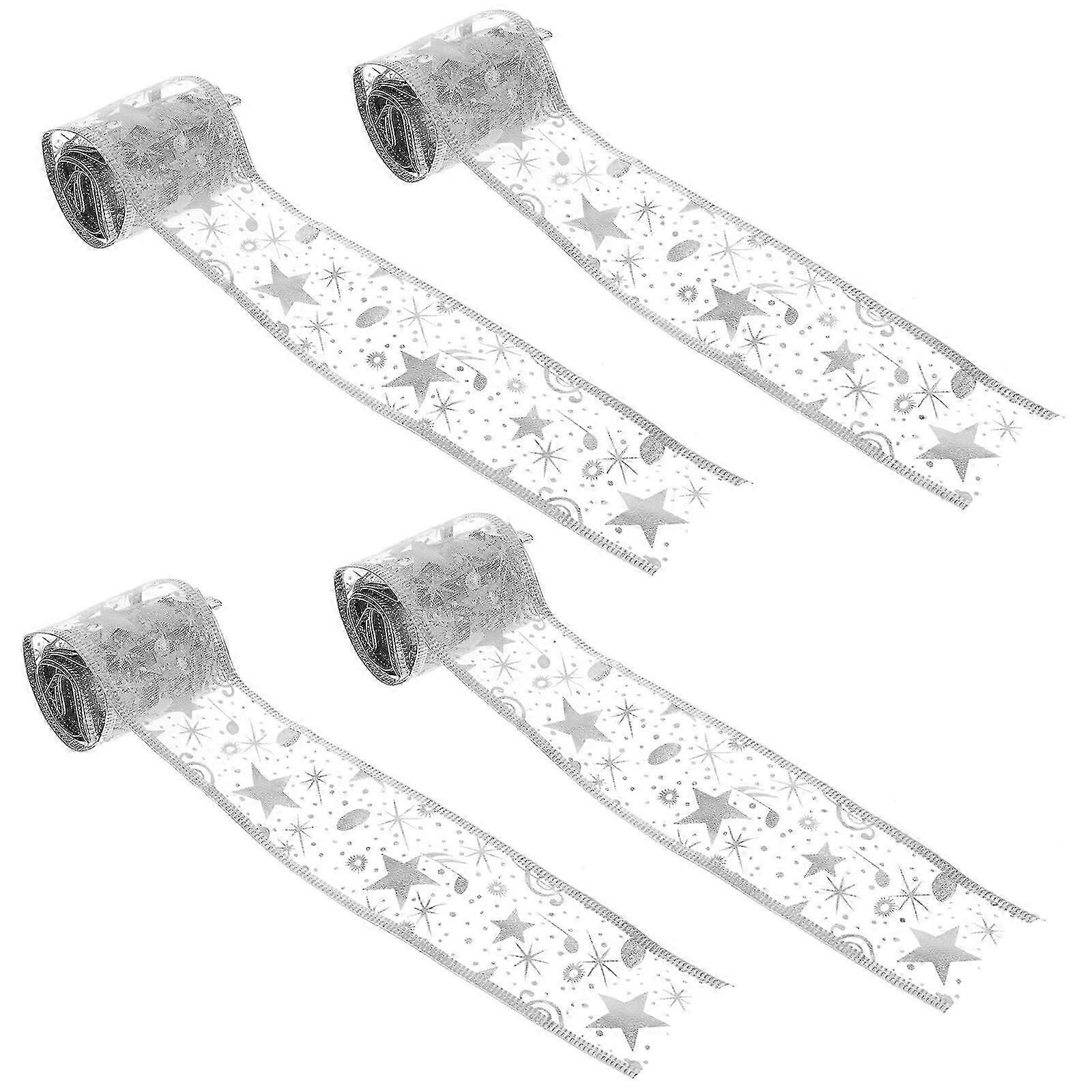 4 Rolls Christmas Ribbon Gift Decor Ribbon Xmas DIY Decorative Ribbons