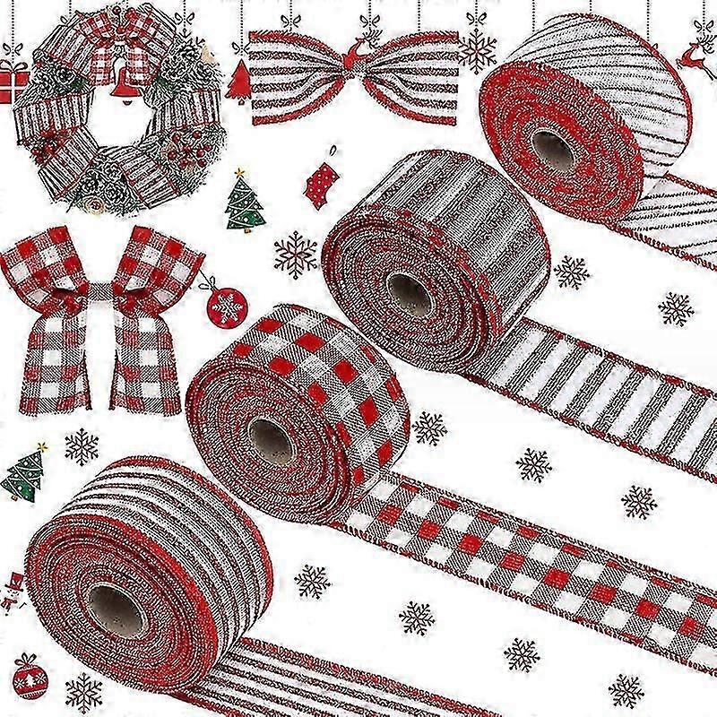 4 Rolls of Christmas Plaid Ribbon Snowflake Plaid Burlap Ribbon Christmas Wrapping Ribbon Christmas Tree Home Wrapping Craft Decoration