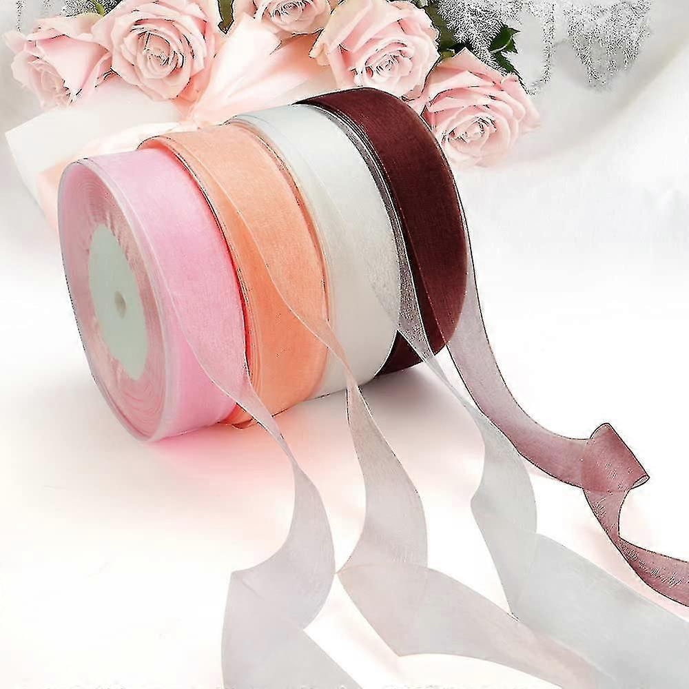 4 Rolls Of Transparent Chiffon Satin Ribbon Gift Ribbon, Suitable For Valentine, Christmas Birthday