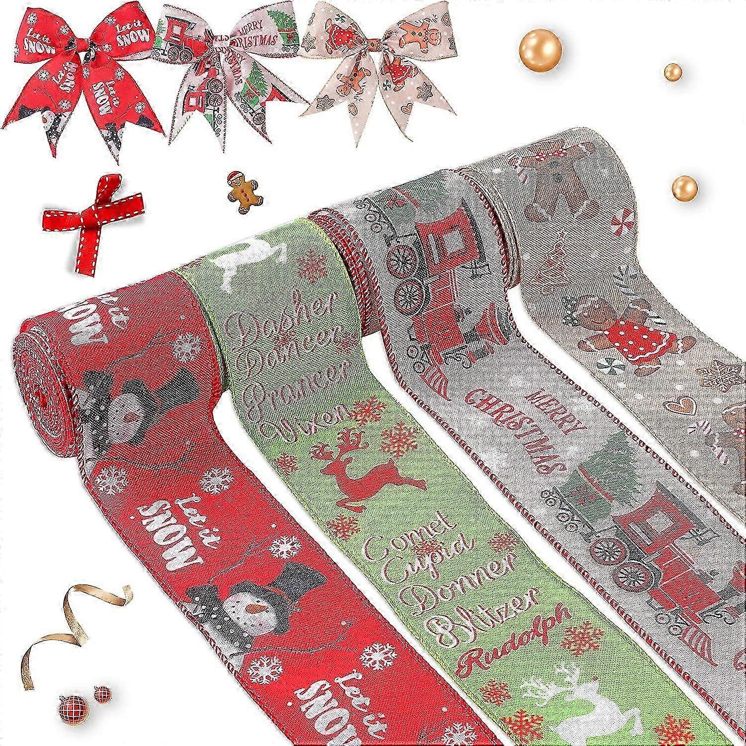 4 Rolls Total 24 Yards Christmas Ribbon Christmas Wired Edge Ribbons Christmas Tree Truck Wired Ribbon Wrapping Ribbon Snowman Wired Edge Ribbon for C