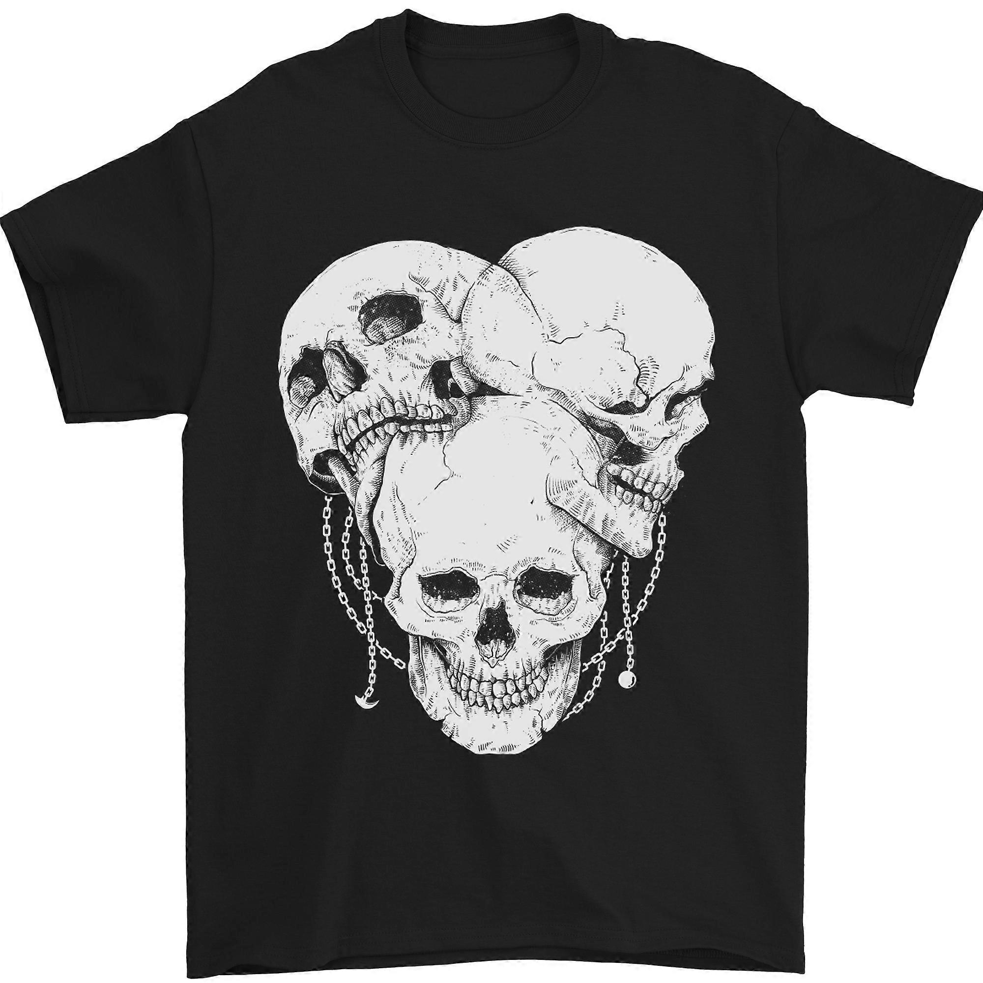 4 Skulls Gothic Heavy Metal Biker Demon Mens T-shirt 100% Cotton