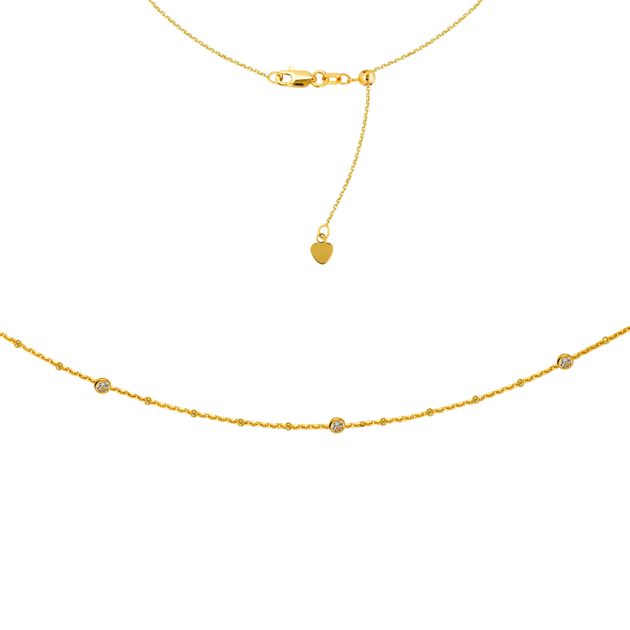 4 Stations Cz Choker 14k Yellow Gold Necklace, 16" Adjustable