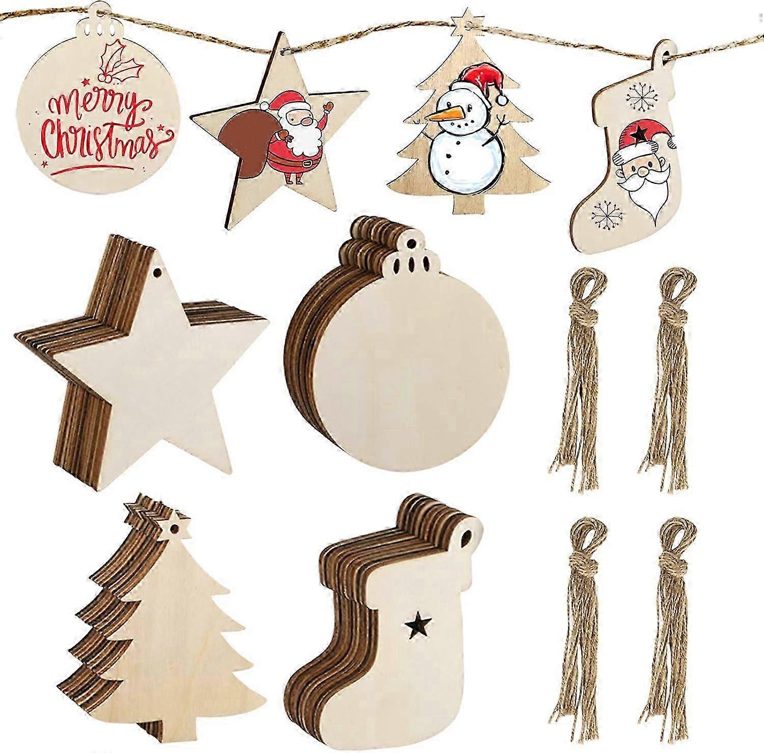 40 PCS Christmas Tree Wooden Ornaments DIY Wood Chip Pendant,4 Styles
