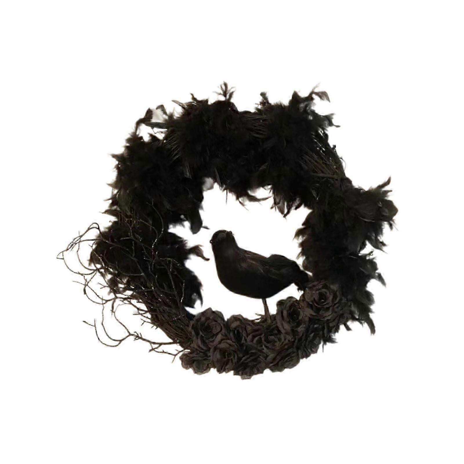 Description:Unique Black WreathHalloween Front door wreath with simulation black crow, black artificial feather, black rose to welcome your friends, neighbors and family during the halloween holidayPremium MaterialThe halloween wreath is made of cloth fabric, artificial feather, lightweight, with black colorSize InformationHalloween decorative wreath, overall diameter approx 40cm/15.75inchHalloween ThemeBlack Halloween Artificial Door Wreath for home door, wall decoration, halloween theme parties, creating a halloween atmosphereNice GiftHalloween Decorations Door Wreath is a wonderful gift for family or friends, as a decoration in the living room, bedroomPackage Includes:1 Halloween Front Door WreathNote:Handmade Products May Have Slight Differences In Each Batch