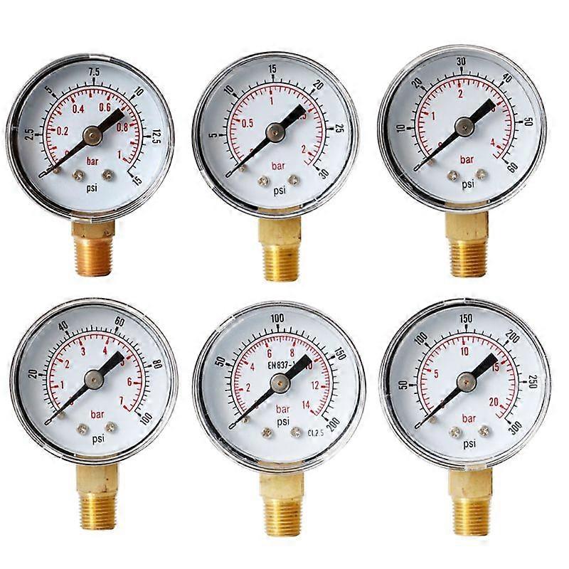 40mm Pressure Gauge 1/8" BSPT Bottom Mount 15.30, 60.100, 160, 200, 300 PSI & Bar for Gas, Air, Water, Fuel, Liquid