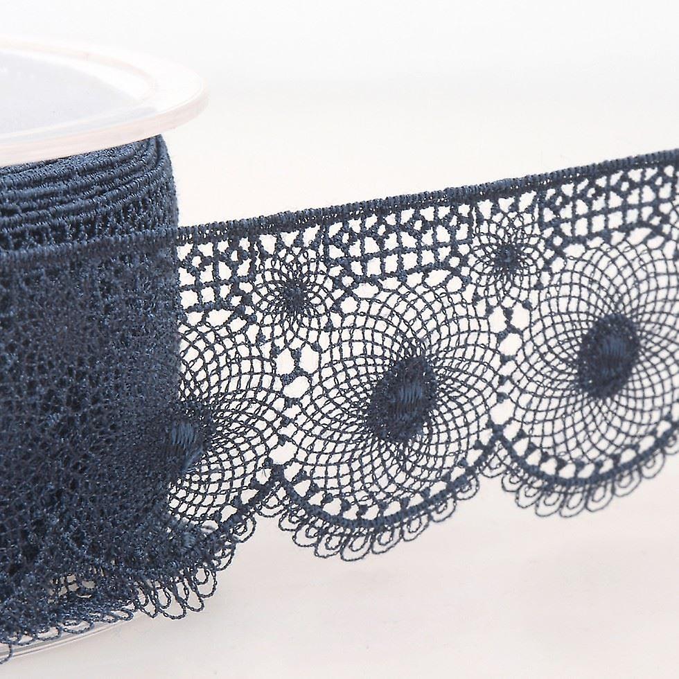 40mm Stephanoise Embroidery Tulle Lace Trim Navy Blue - per metre