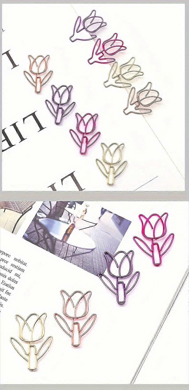 40pcs Cute Tulip Flower Paper Clips Creative Stationery Office Metal Clips