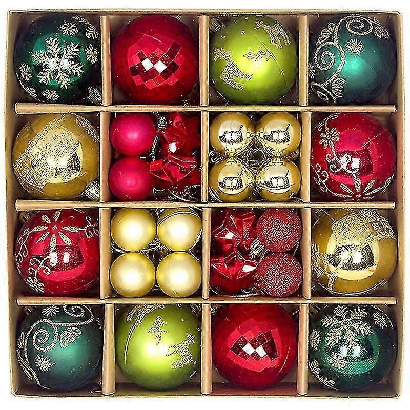 44pcs 3-6cm Shatterproof Christmas Baubles, Luxury Red and Green Christmas Ball Ornaments for Christmas Tree Decorations