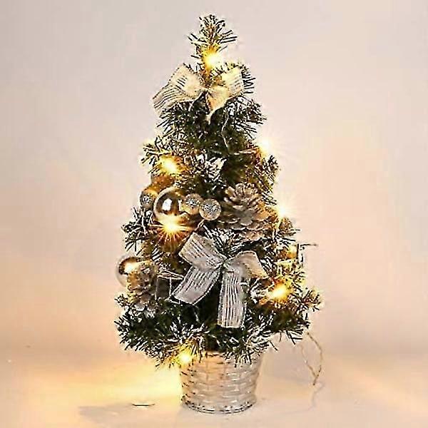 45CM Small Christmas Tree with Lights, Mini Desktop Decoration Christmas Tree with Star Top, Baubles, Bows, Pine Cones