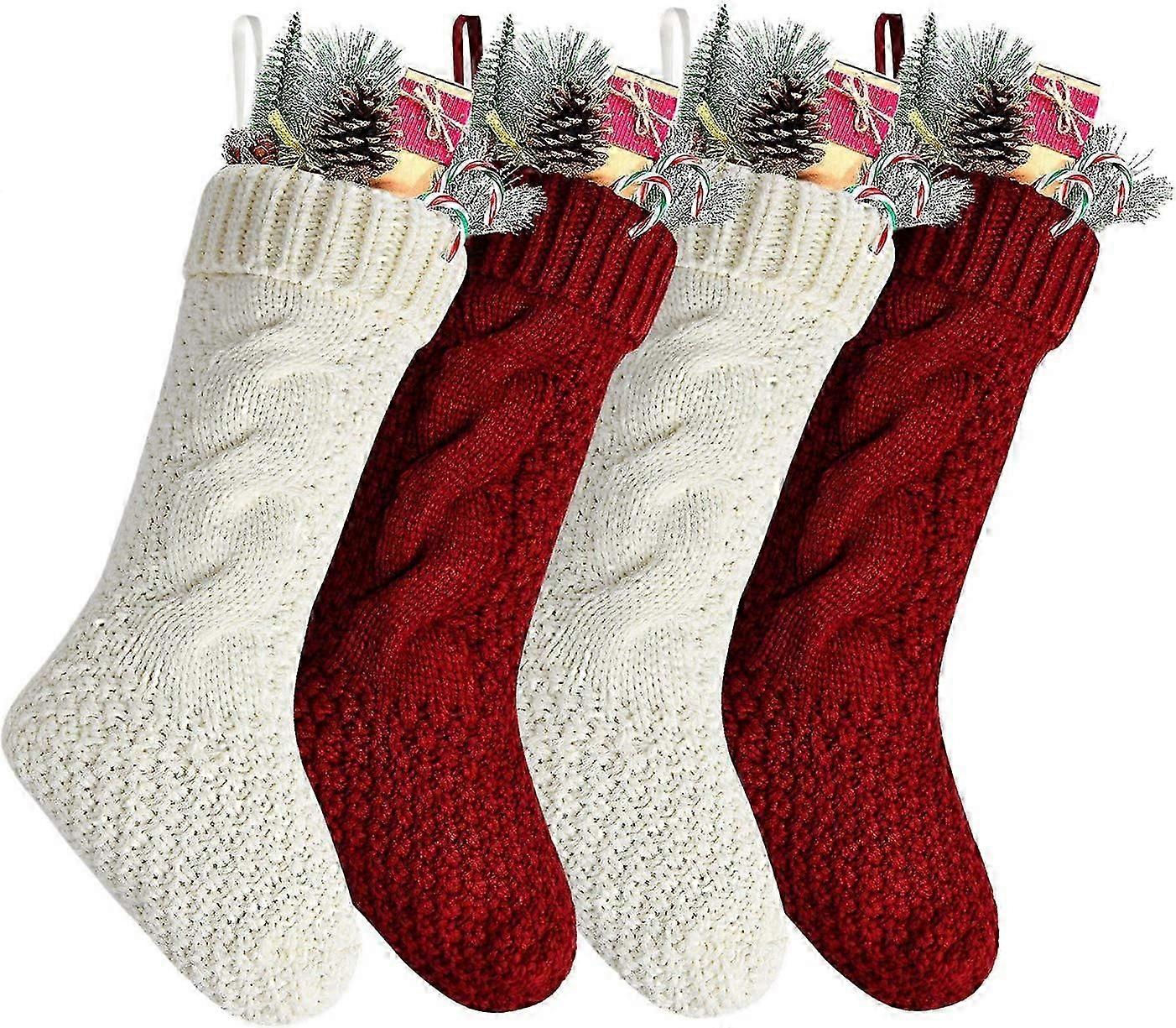 46CM Unique Burgundy and Ivory White Knit Christmas Stockings 2Pack/4 Pack