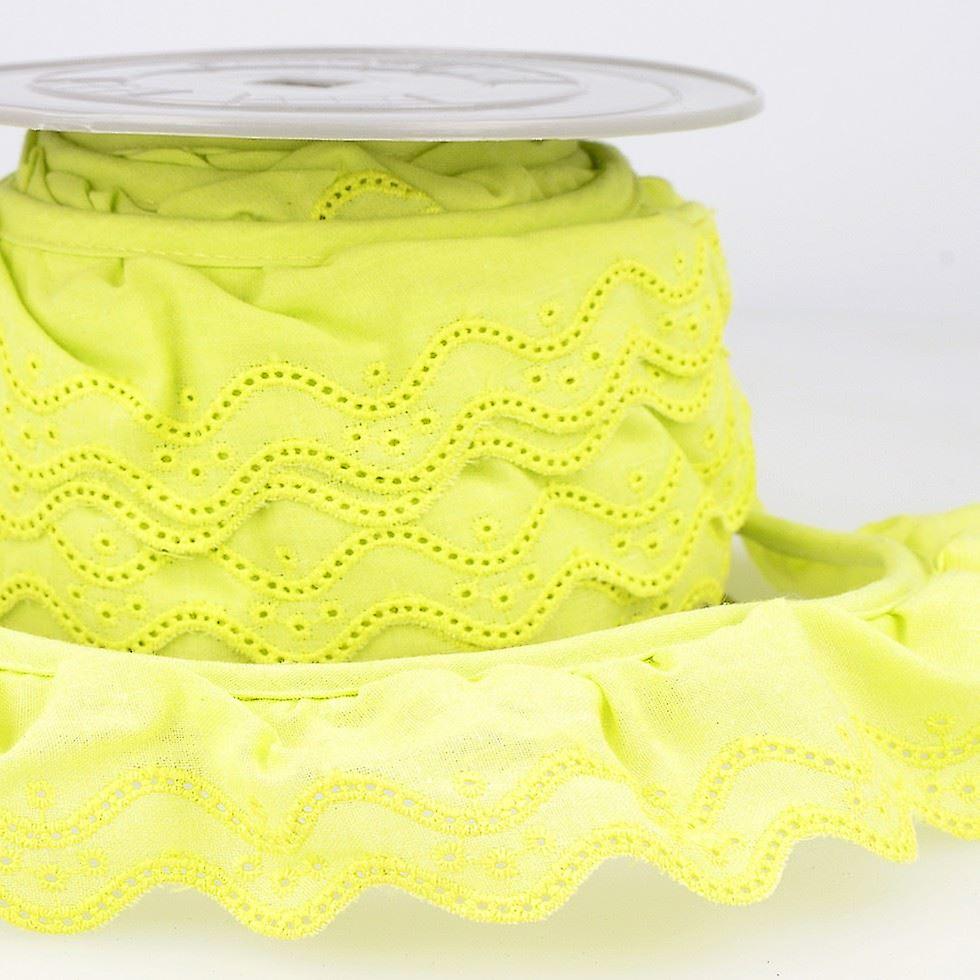 46mm Stephanoise Eyelet Gathered Lace Trim Lemon Yellow - per metre