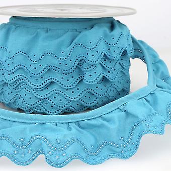 46mm Stephanoise Eyelet Gathered Lace Trim Turquoise Blue - per metre