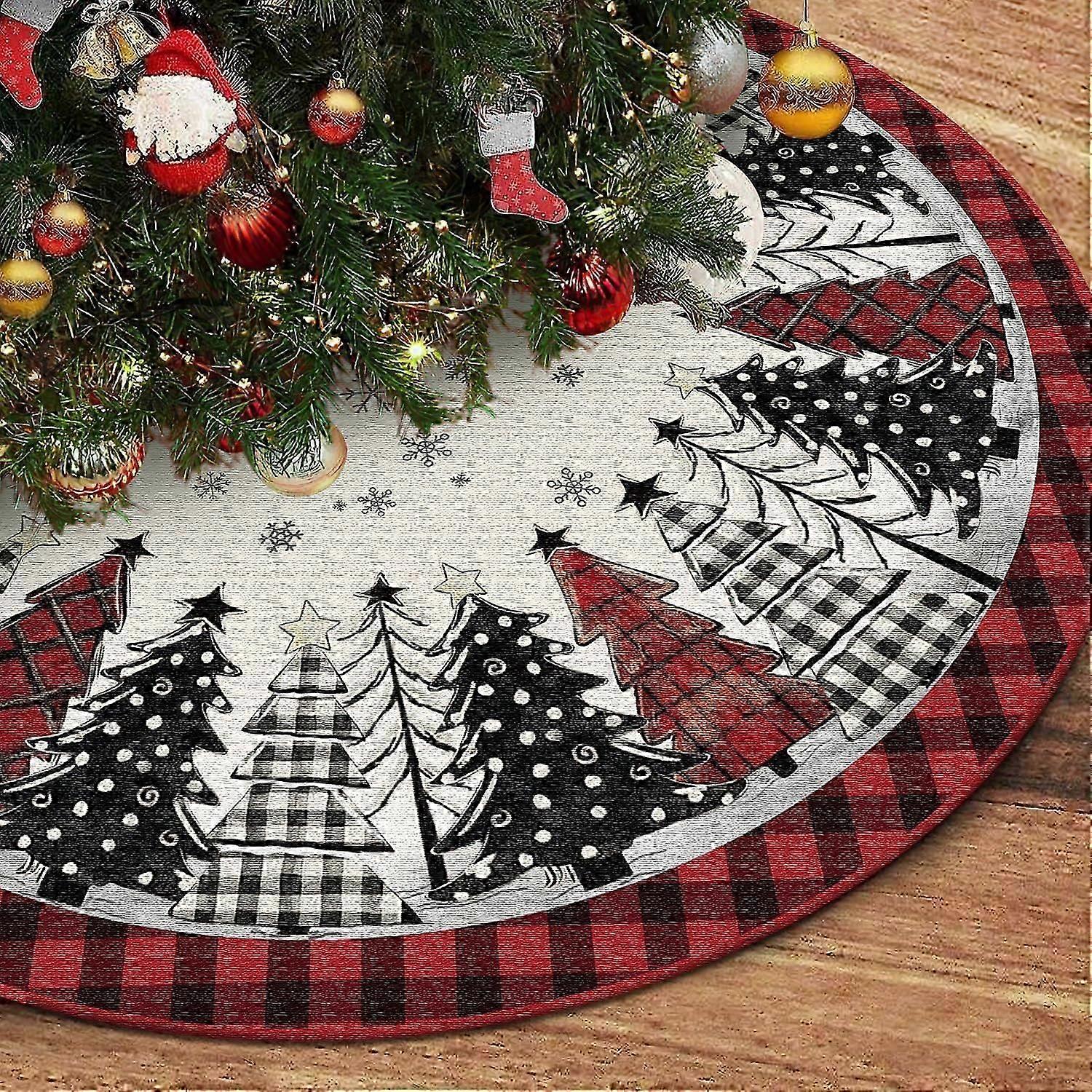 48 Inch Christmas Tree Skirt, Red and Black Buffalo Plaid Christmas Tree Skirt, Christmas Tree Mat, Ideal for Christmas Tree Decorations, Holiday Par