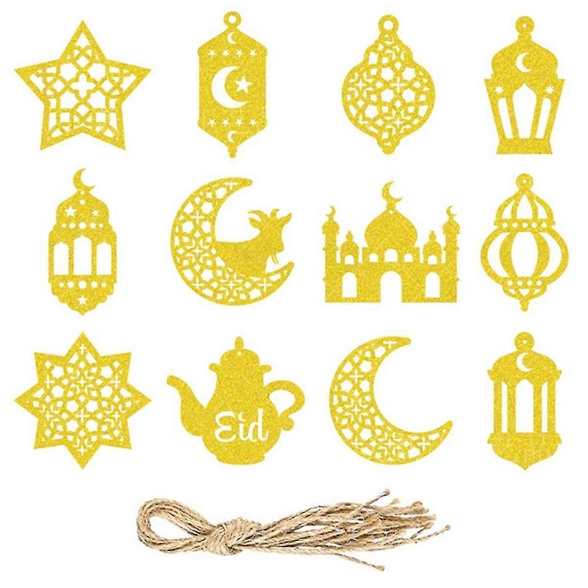 48-Piece Ramadan Ornaments Glitter Eid Mubarak Hanging Decorations, Golden Crescent and Star Gift Tags