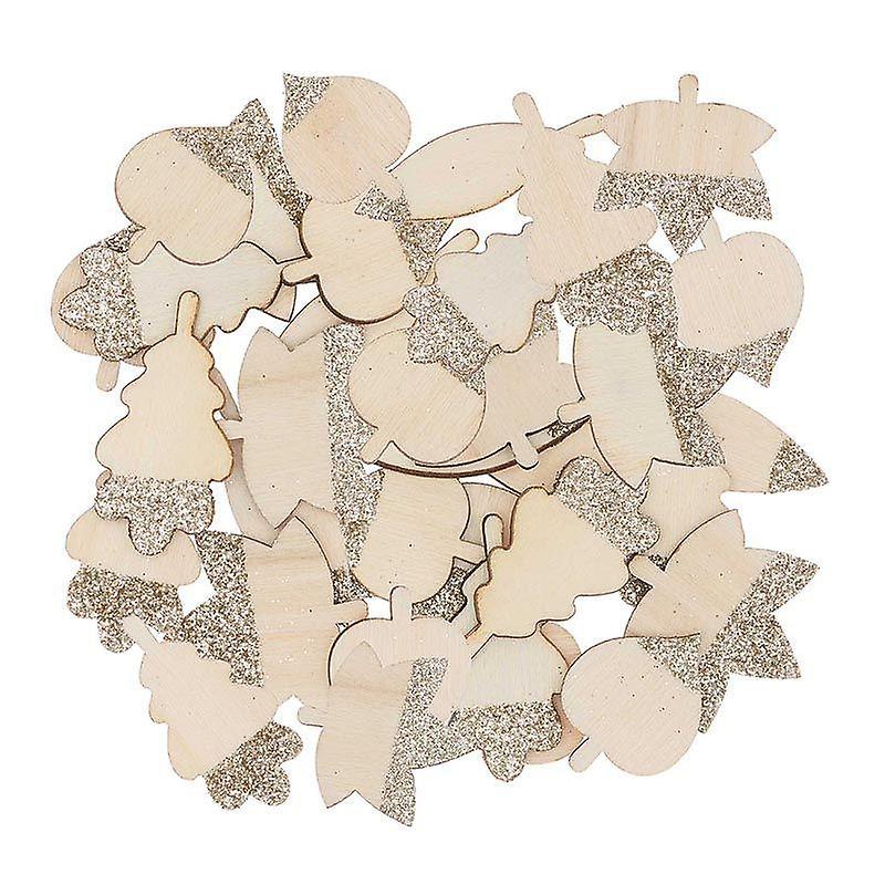 48 wooden silhouettes with golden glitter leaves