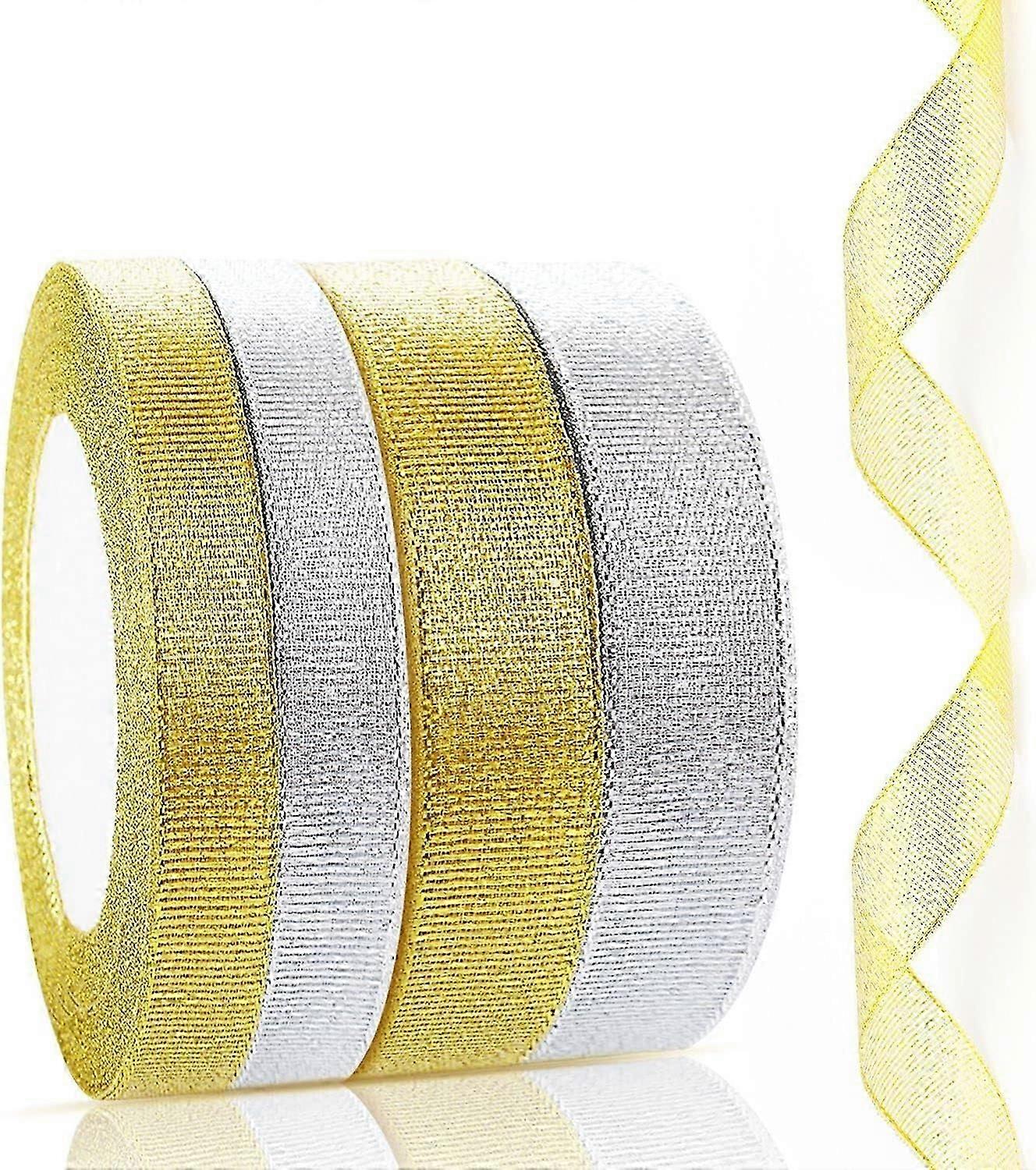 4Pack 20mm 10mm Gift Wrapping Ribbon - Sequin Organza Christmas Tree Ribbon - 4 x 22m, Gold, Silver ZeGoods