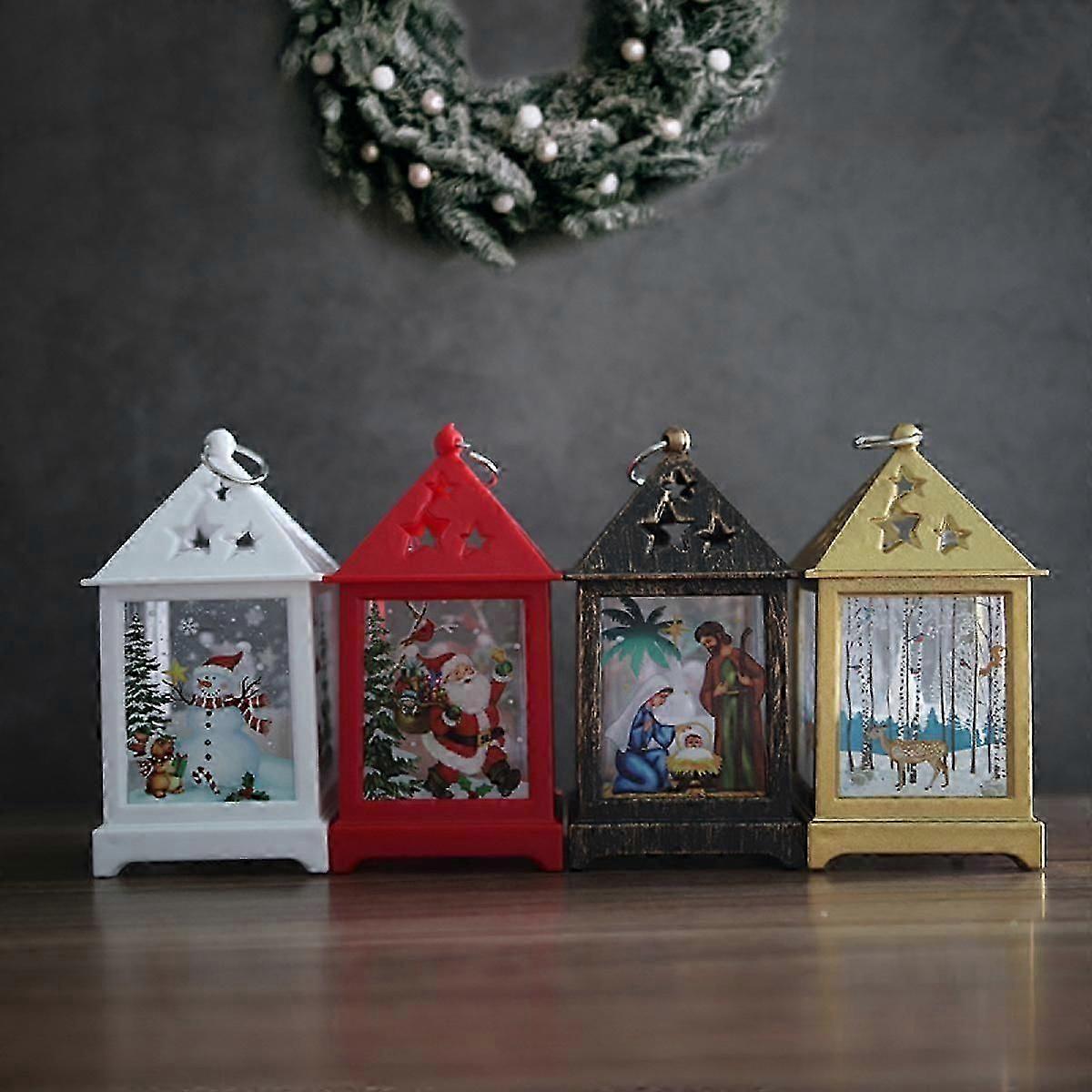 4PC Christmas Lanterns, Vintage Xmas Candle with LED Santa Claus Lantern for Christmas Holiday Table Decorations