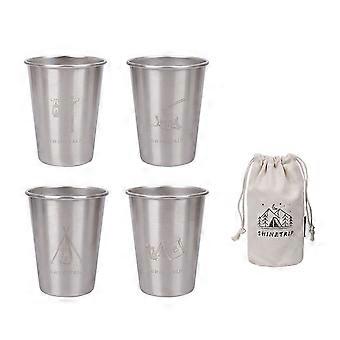 4pcs 350ml Stainless Steel Cup Set Outdoor Camping Travel BBQ Wine Beer Drinks Tea Coffee Mug Water Bottle Drinkware with Bag