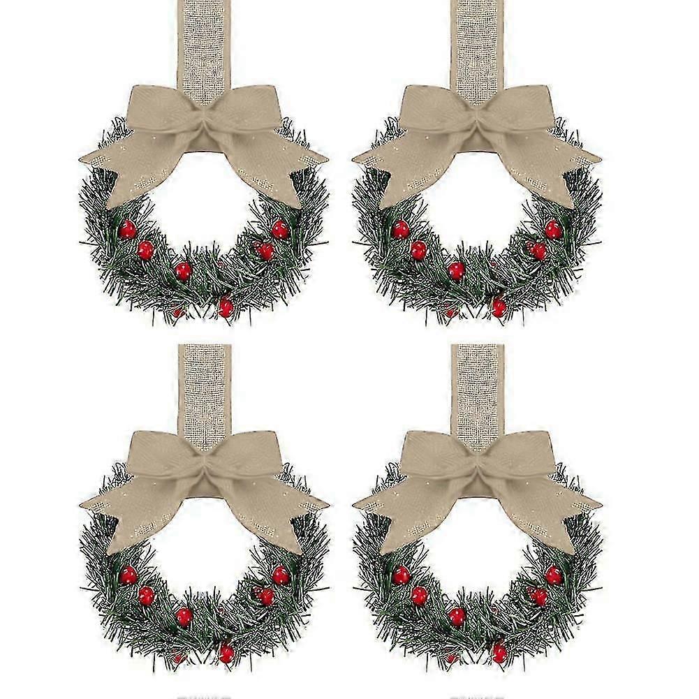 4Pcs Christmas Cabinet Wreath Ribbon Mini Christmas Wreathes With Bow