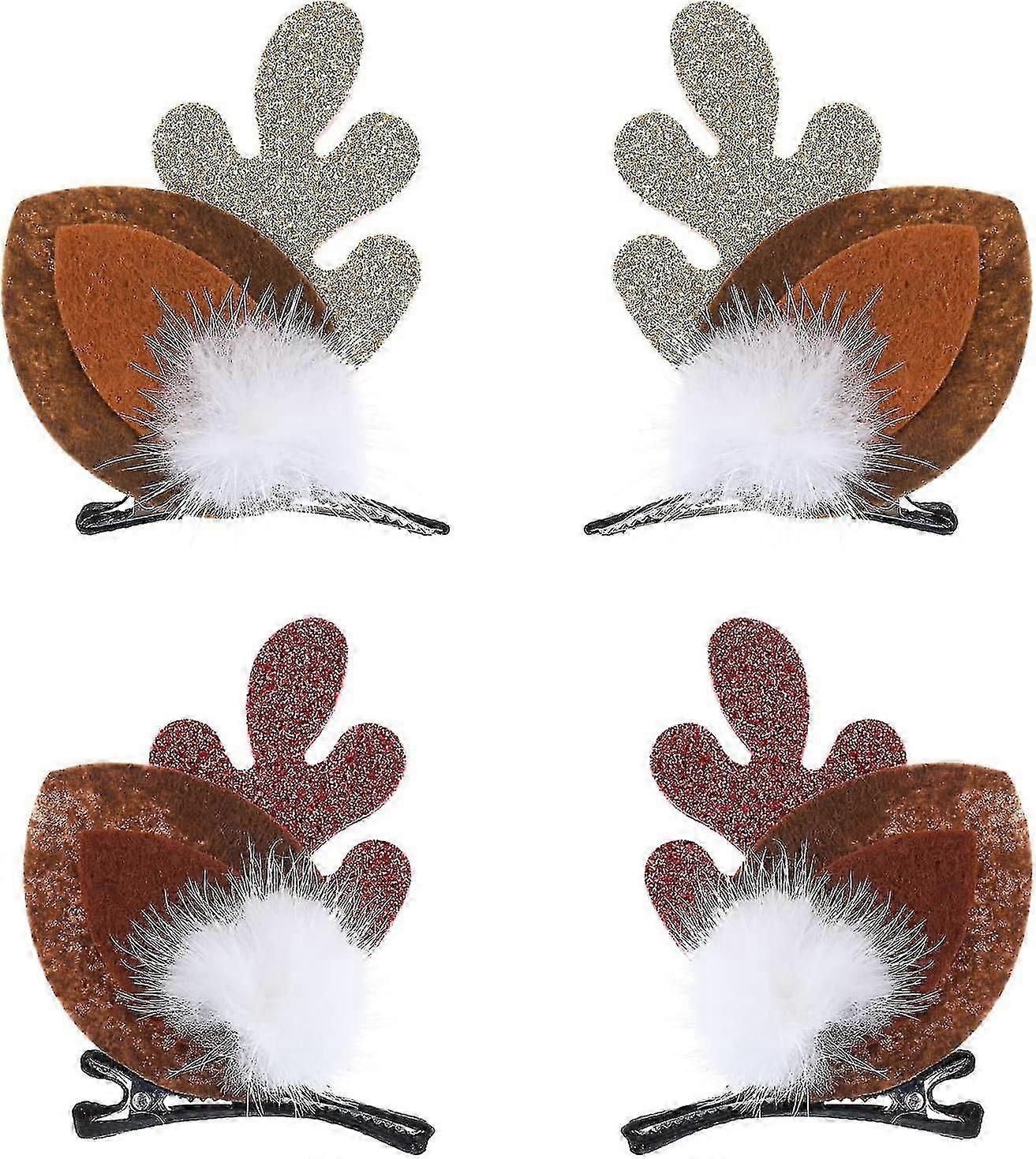 4pcs Christmas Hair Clip, Christmas Reindeer Antler Hairpin Cute Girl Ornament Gift With Pom Balls Deer Ear Decoration (brown)