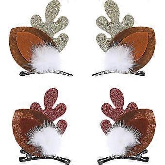 4pcs Christmas Hair Clip, Christmas Reindeer Antler Hairpin Cute Girl Ornament Gift With Pom Balls Deer Ear Decoration (brown)