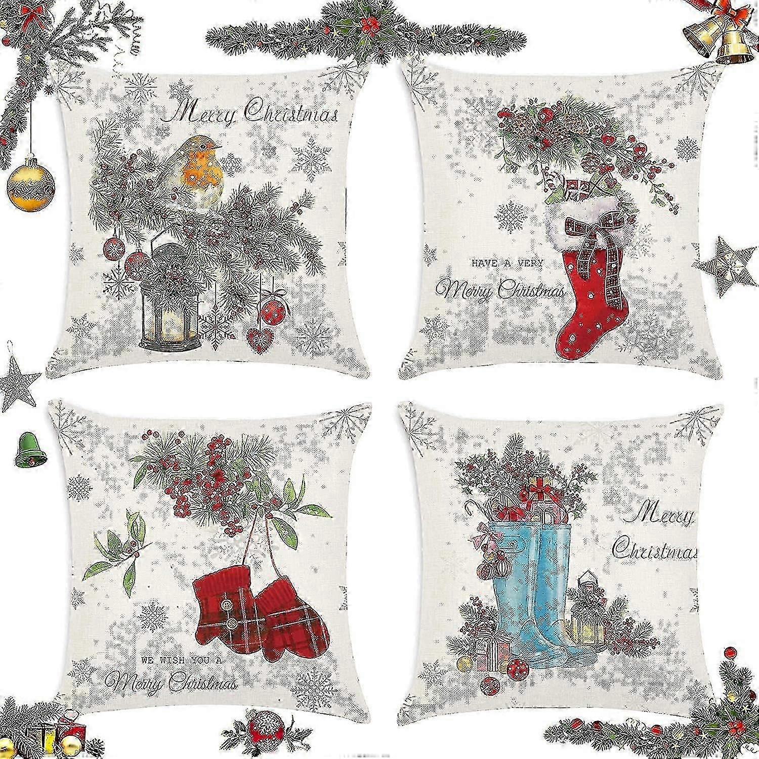 4pcs Christmas Pillow Covers, Christmas Pillow Covers, Christmas Cushion Cover, Decorative Cushion Cover, Christmas Decorations Pillow Covers, Decorat