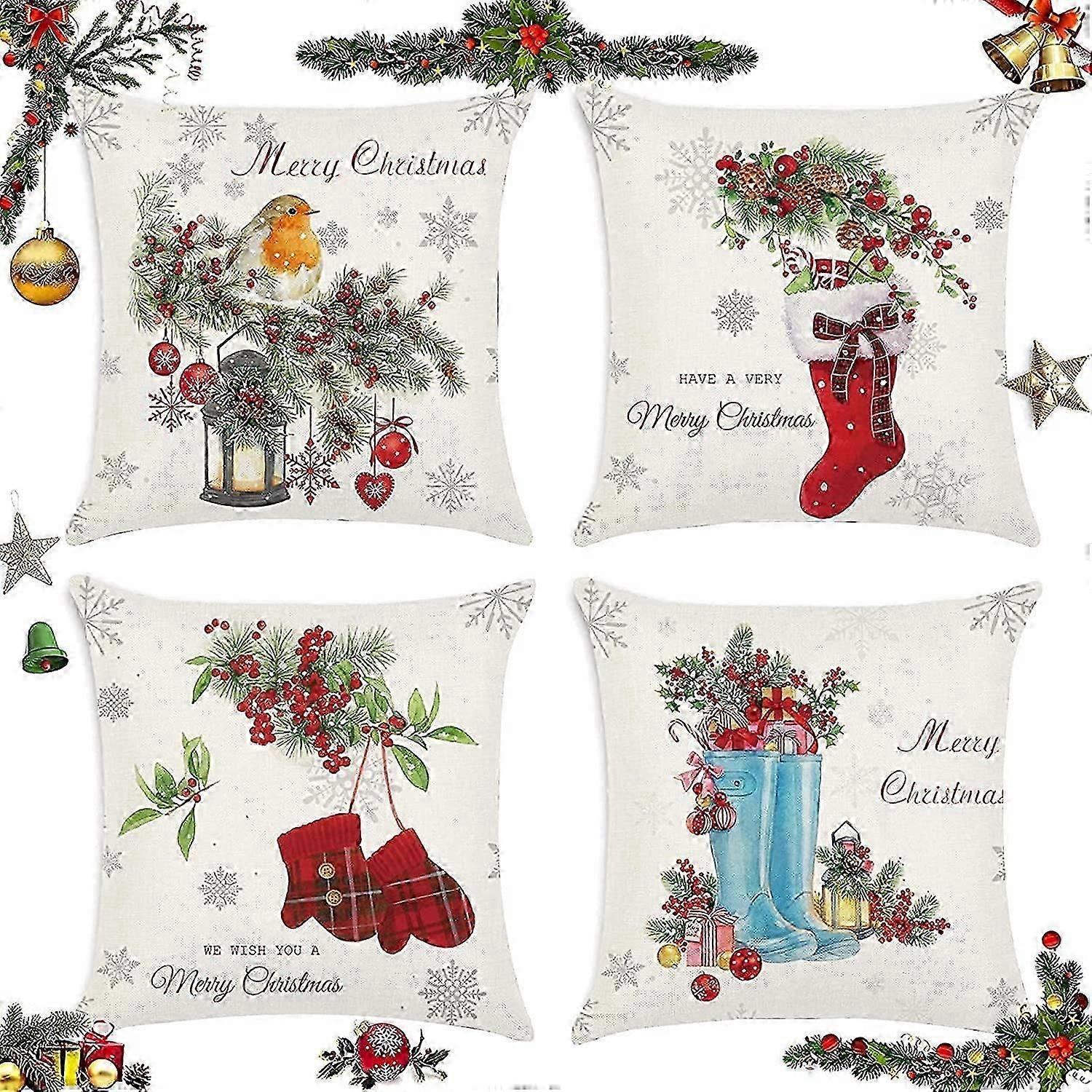 4pcs Christmas Pillow Covers, Christmas Pillow Covers, Christmas Cushion Cover, Decorative Cushion Cover, Christmas Decorations Pillow Covers, Decorat